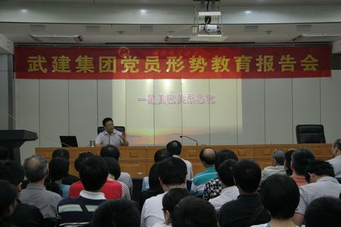 目前,我國周邊安全形勢問題是廣大黨員關(guān)心的熱點(diǎn)問題之一。為了進(jìn)一步培養(yǎng)廣大黨員的愛國情感和國防意識(shí),正確了解當(dāng)前形勢,認(rèn)識(shí)安全穩(wěn)定的重要性,5月16日下午,武建集團(tuán)邀請海軍工程大學(xué)理學(xué)院人文社科系教授、武漢名家論壇主講人黃友牛,來集團(tuán)作國防形勢教育報(bào)告會(huì)。來自集團(tuán)各單位的黨員、積極分子260余人參加了報(bào)告會(huì)。